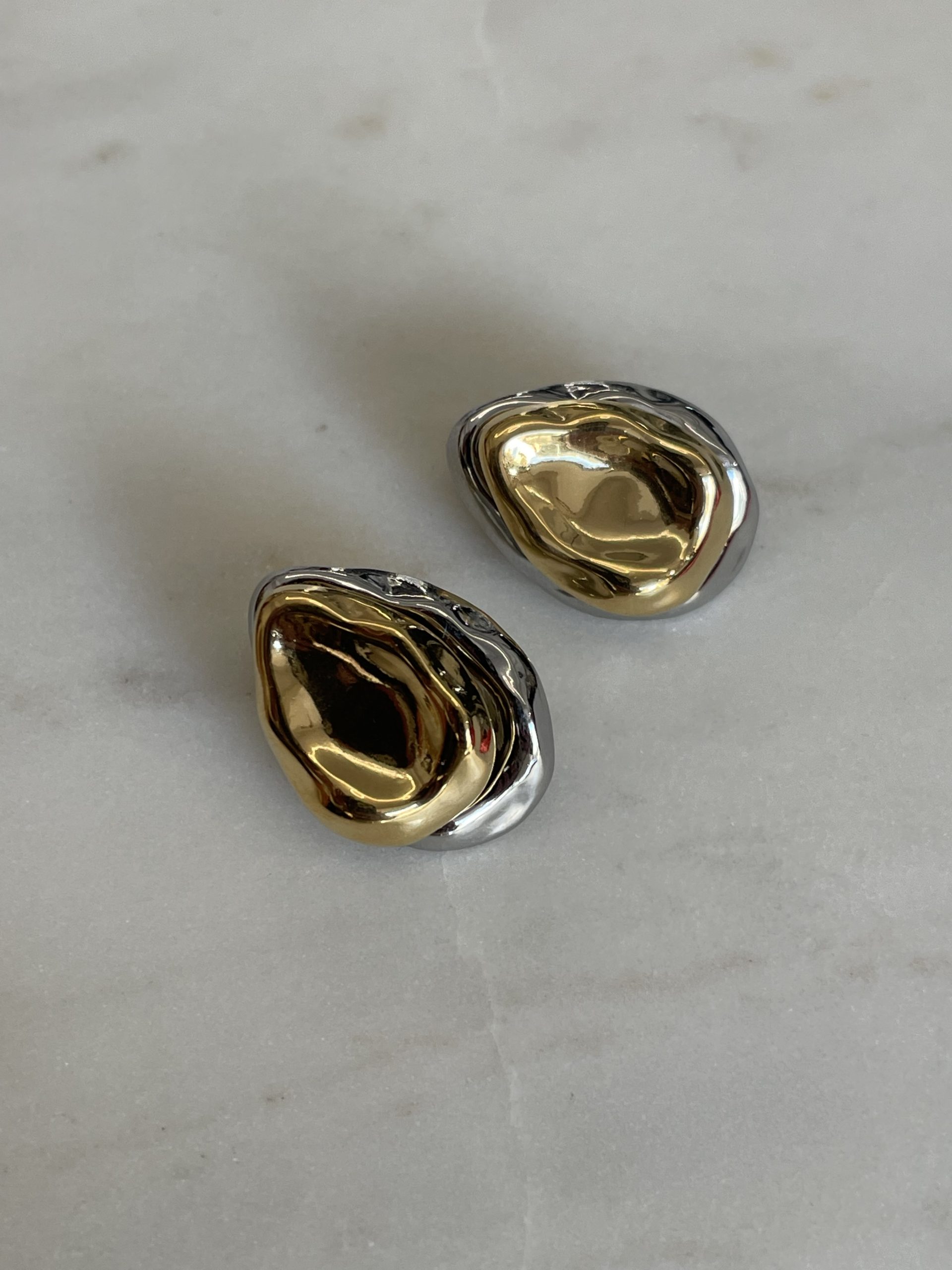 Ατσάλινα σκουλαρίκια Διπλό Οβάλ με Καρφάκι