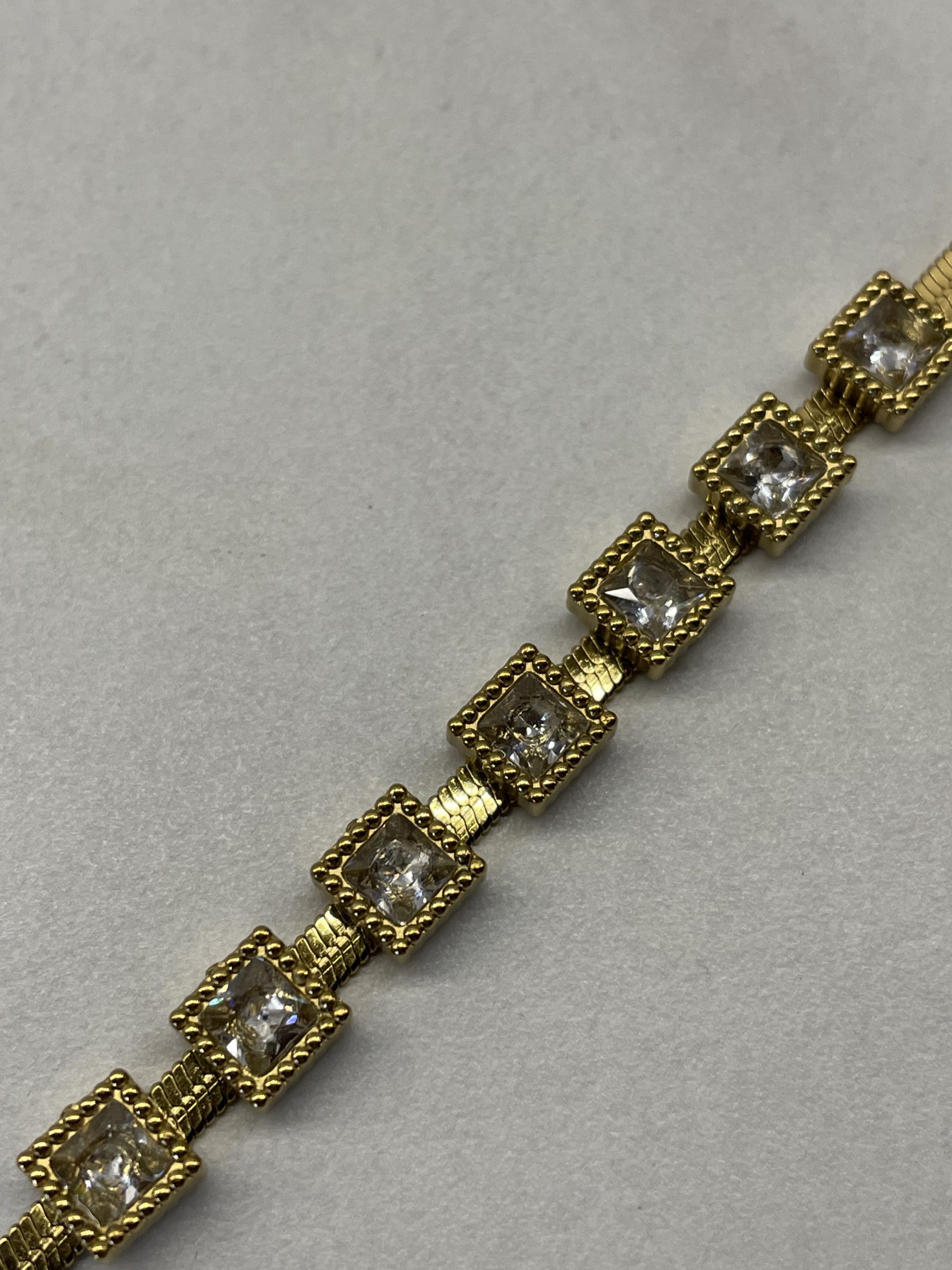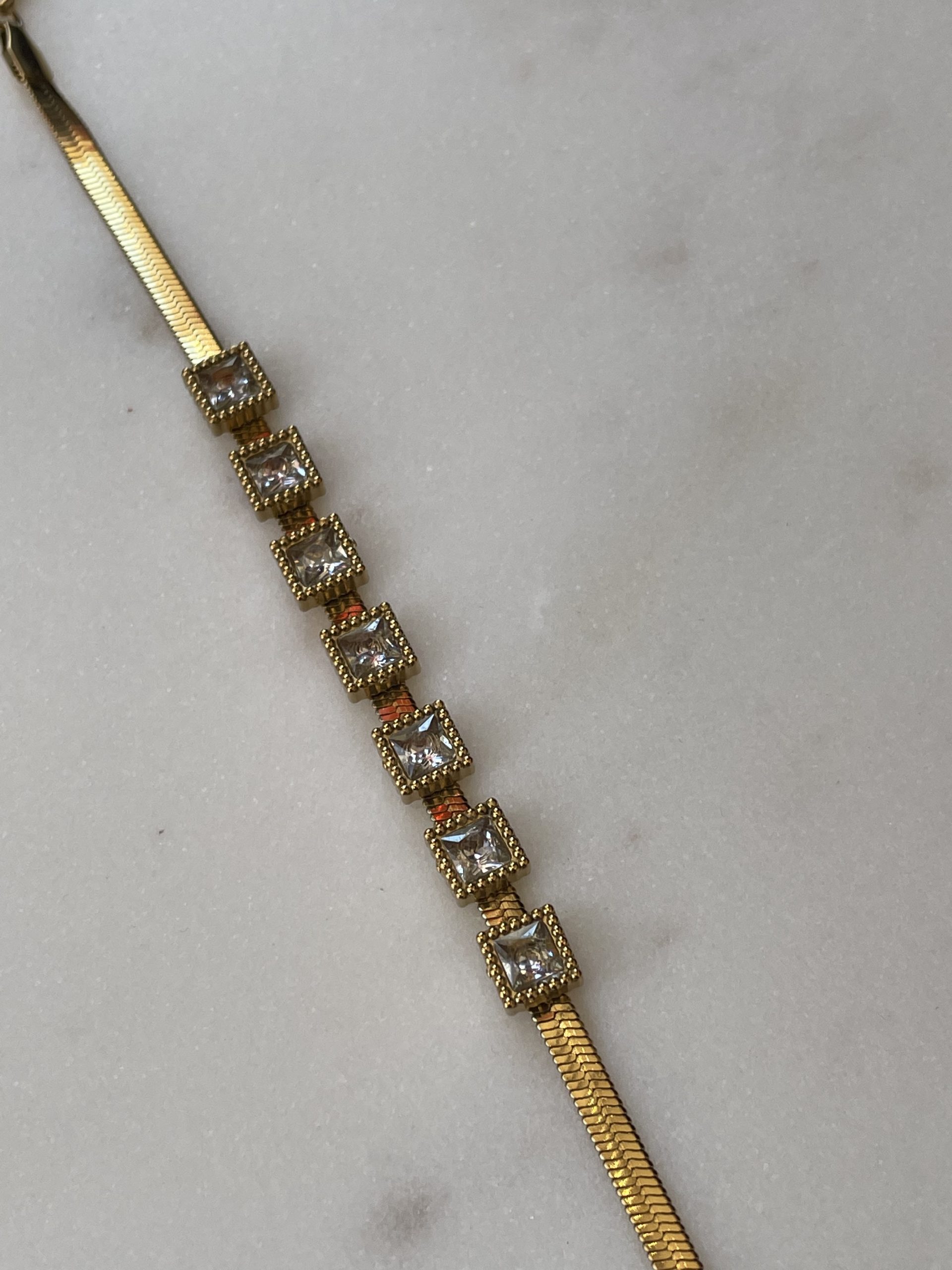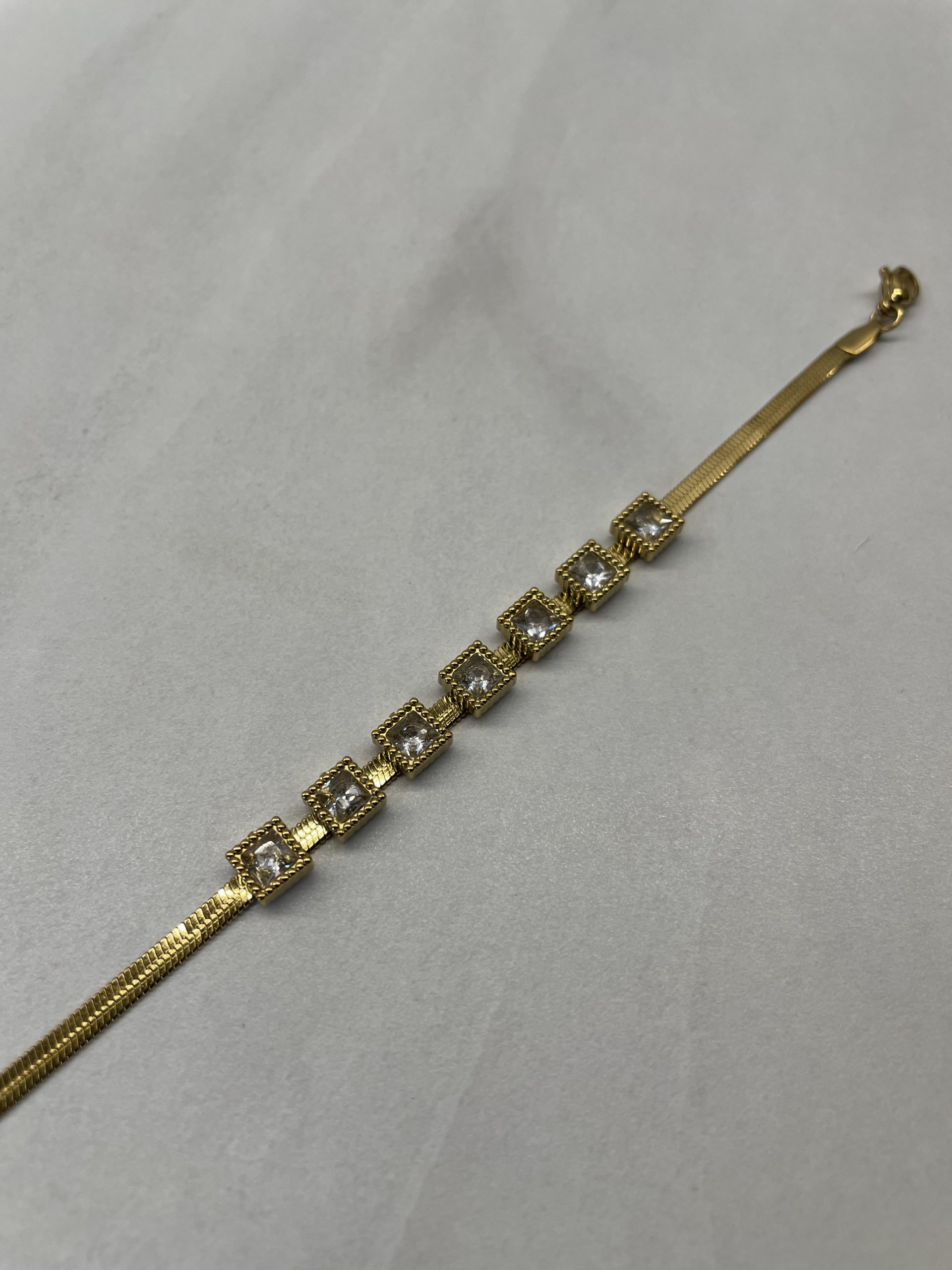 Ατσάλινο Βραχιόλι με Αλυσίδα Ψαροκόκκαλο και Πέτρες Τετράγωνες 6.5mm