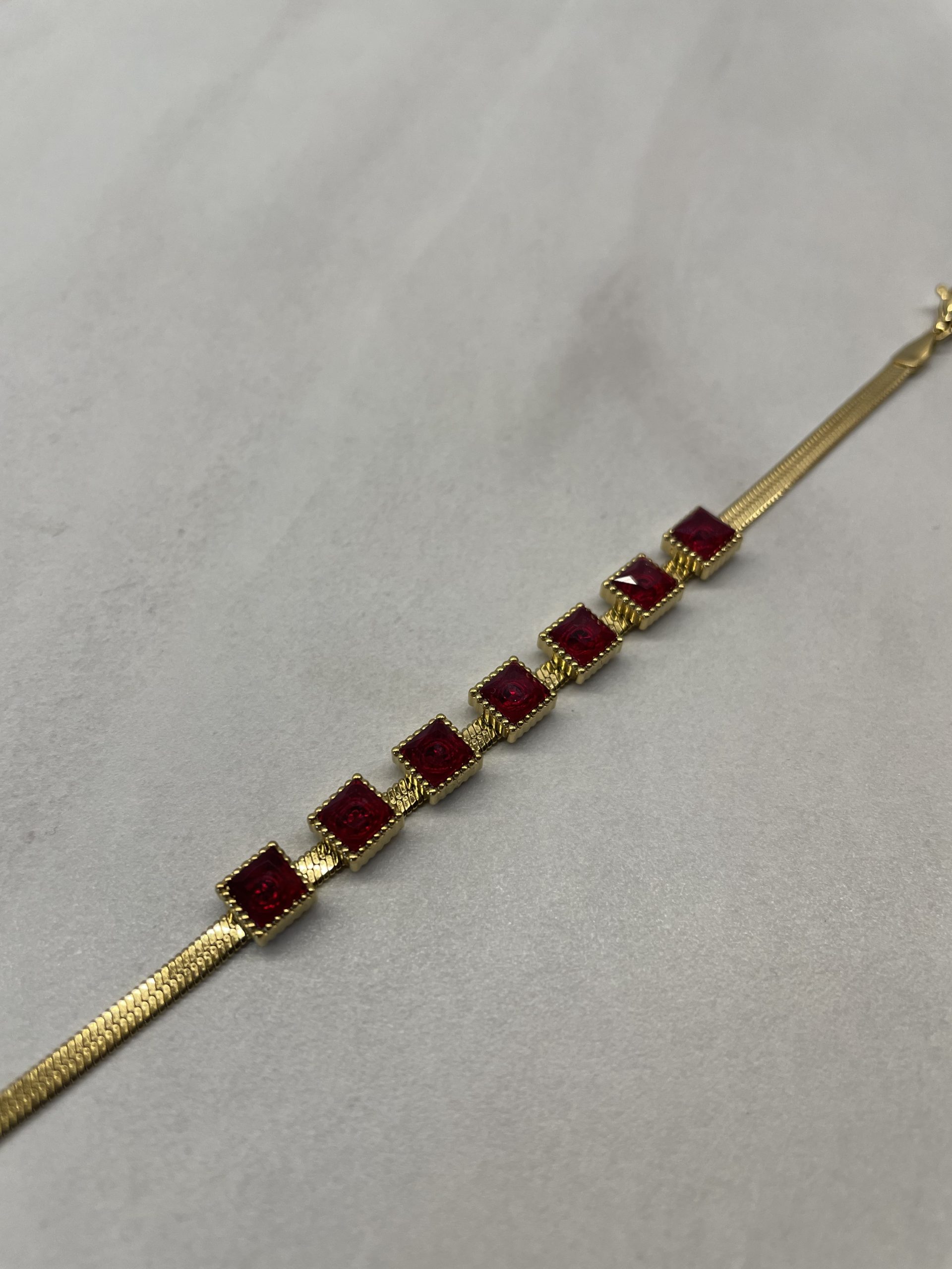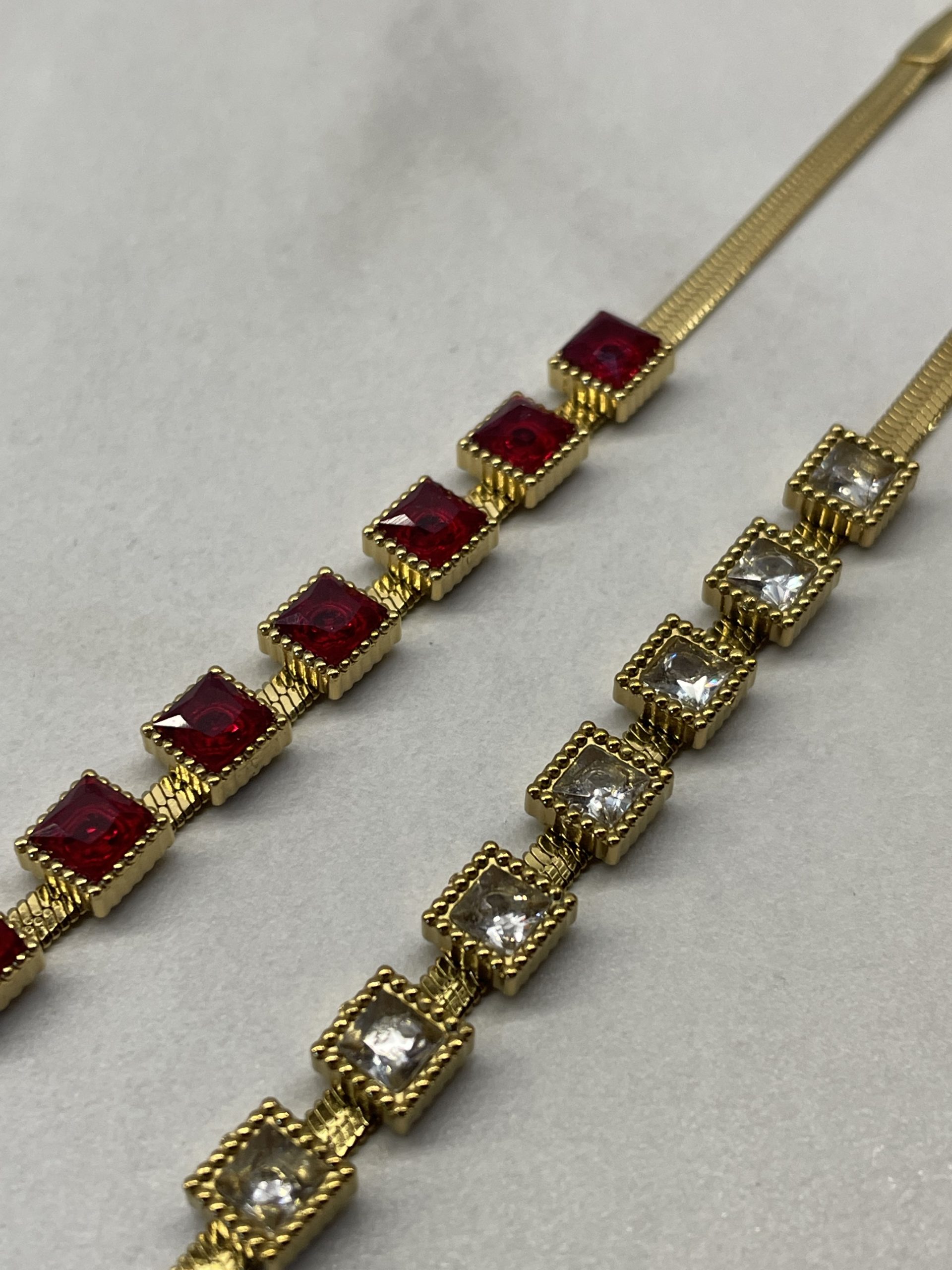 Ατσάλινο Βραχιόλι με Αλυσίδα Ψαροκόκκαλο και Πέτρες Τετράγωνες 6.5mm